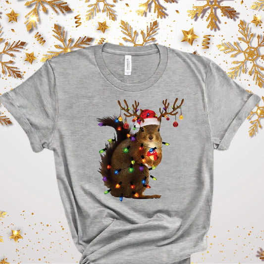 Christmas Squirrel Lights Shirt, Funny Christmas Tshirt, Christmas Shirt, Xmas Party Shirt, Christmas Gift Shirt, Cute Christmas Tshirt
