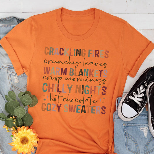 Crackling Fires Shirt, Crunchy Leaves Shirt, Cozy Shirts, Halloween Shirt, Fall Lover Shirts, Fall Concept Shirt, Pumpkin Shirt, Halloween Party TeeShirts, Fall T-Shirt