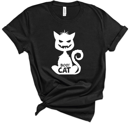 Spooky Boo Cat Halloween Tee - Perfect October Outfit, Cute Black Cat Halloween Shirt - Trick or Treat Ready, Fun Boo Cat Graphic T-Shirt - Halloween Night Essential, Halloween Black Cat Silhouette Tee - Festive Wear for All Ages