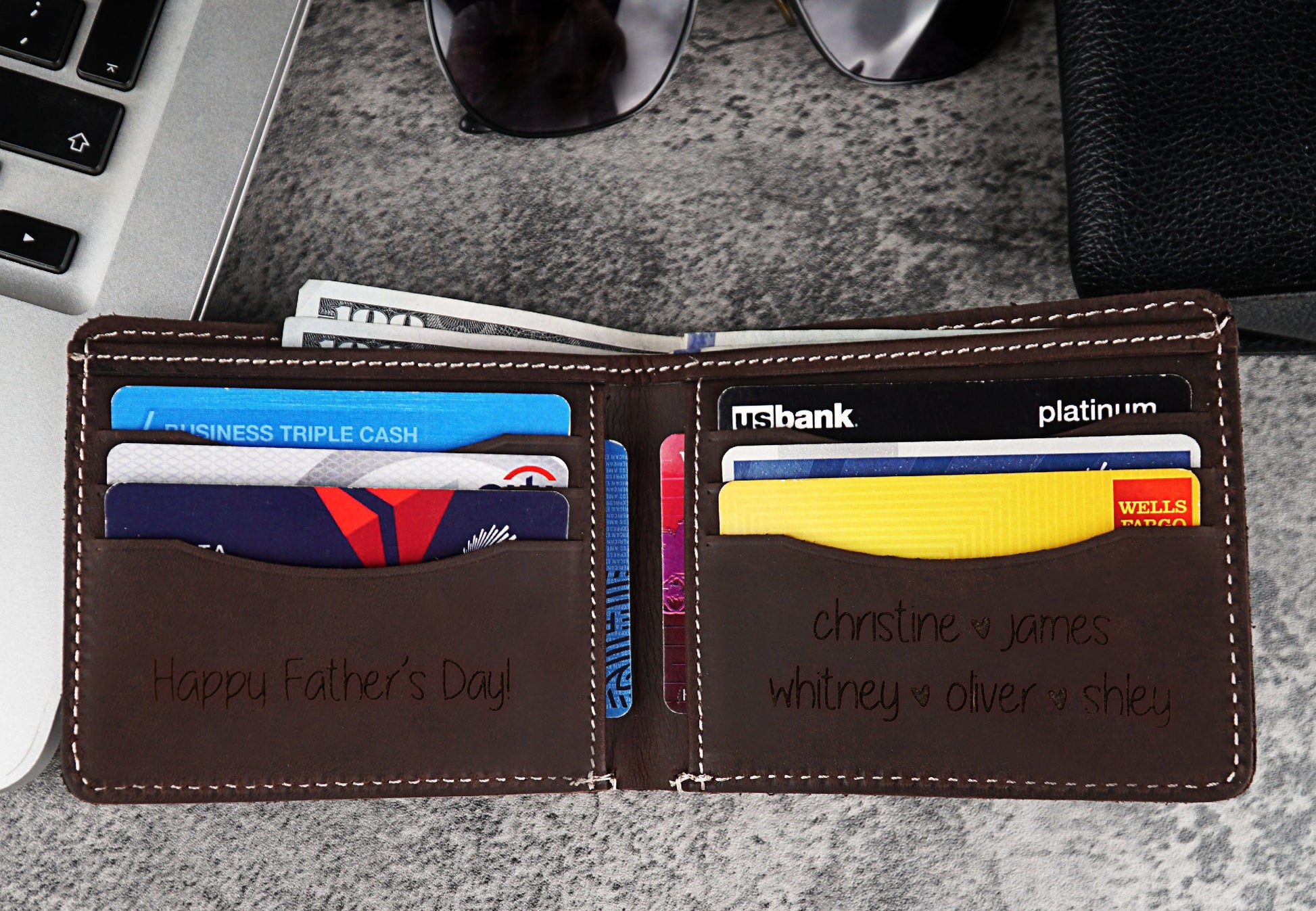 Custom Engraved Mens Slim Wallet, Christmas Gift Wallets, Engraved Genuine Leather Wallets, Personalized Wallet, Father's Day Wallet