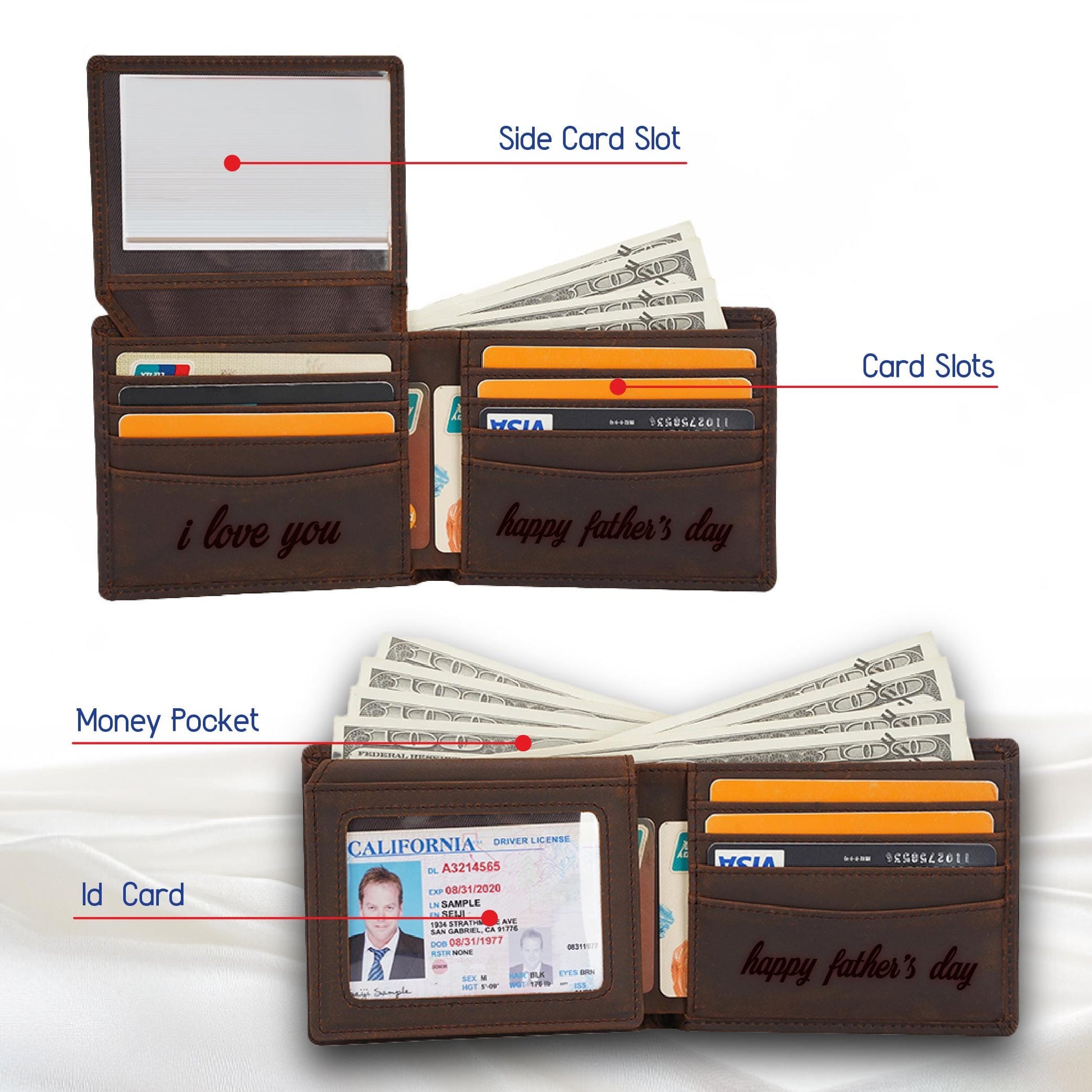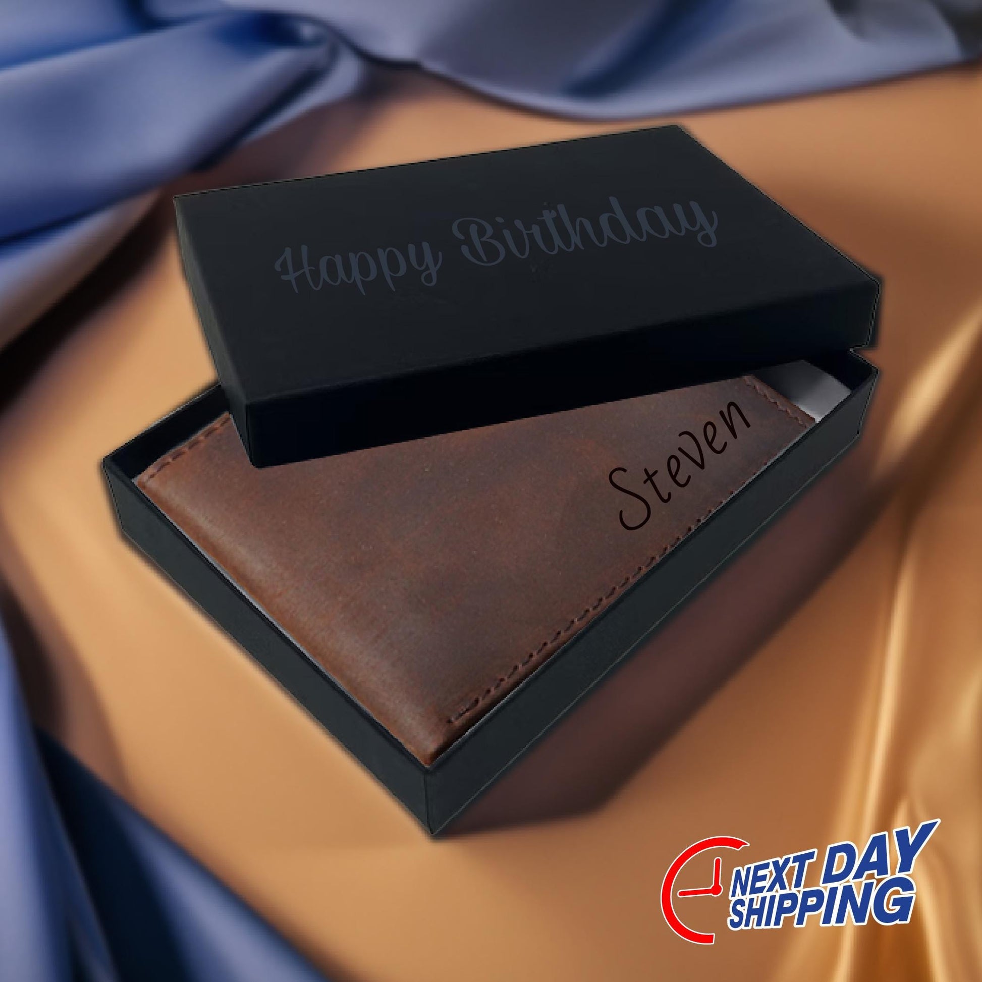 Customized Gift For Men: You can order our Engraved Wallet for your father, husband, friend and we can customize if for him.