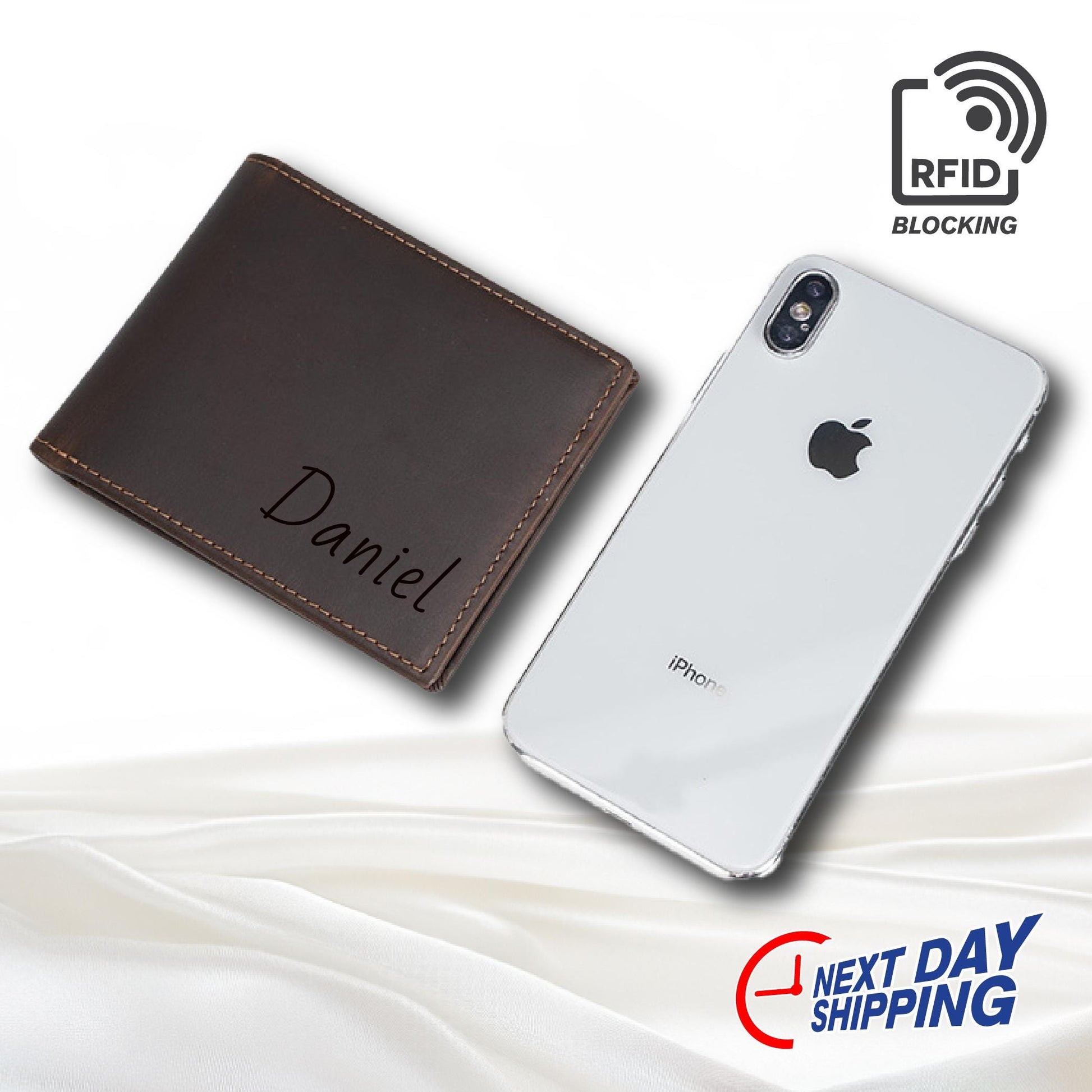 Custom Engraved RFID Blocking Valentines Wallet, Christmas Gifts, Valentine’s Day Gift Mens Wallet, Wallet For Men Brown, Black Men's Wallet