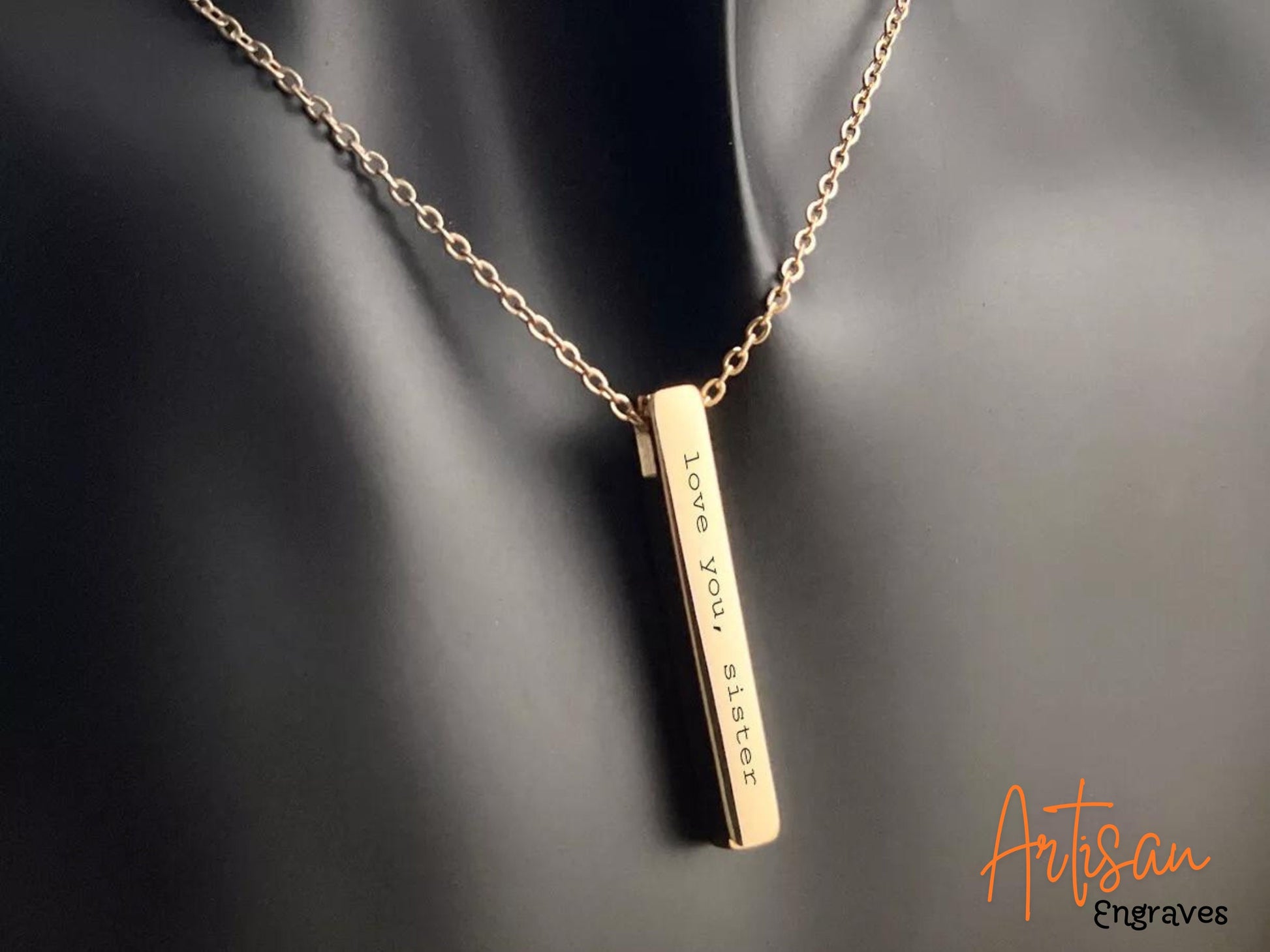 Our four-sided bars can be personalized with actual signatures, children's handwriting, handwriting from grandparents, parents, and loved ones. All we need is a photograph of the writing. Preserve the past with these custom necklaces.