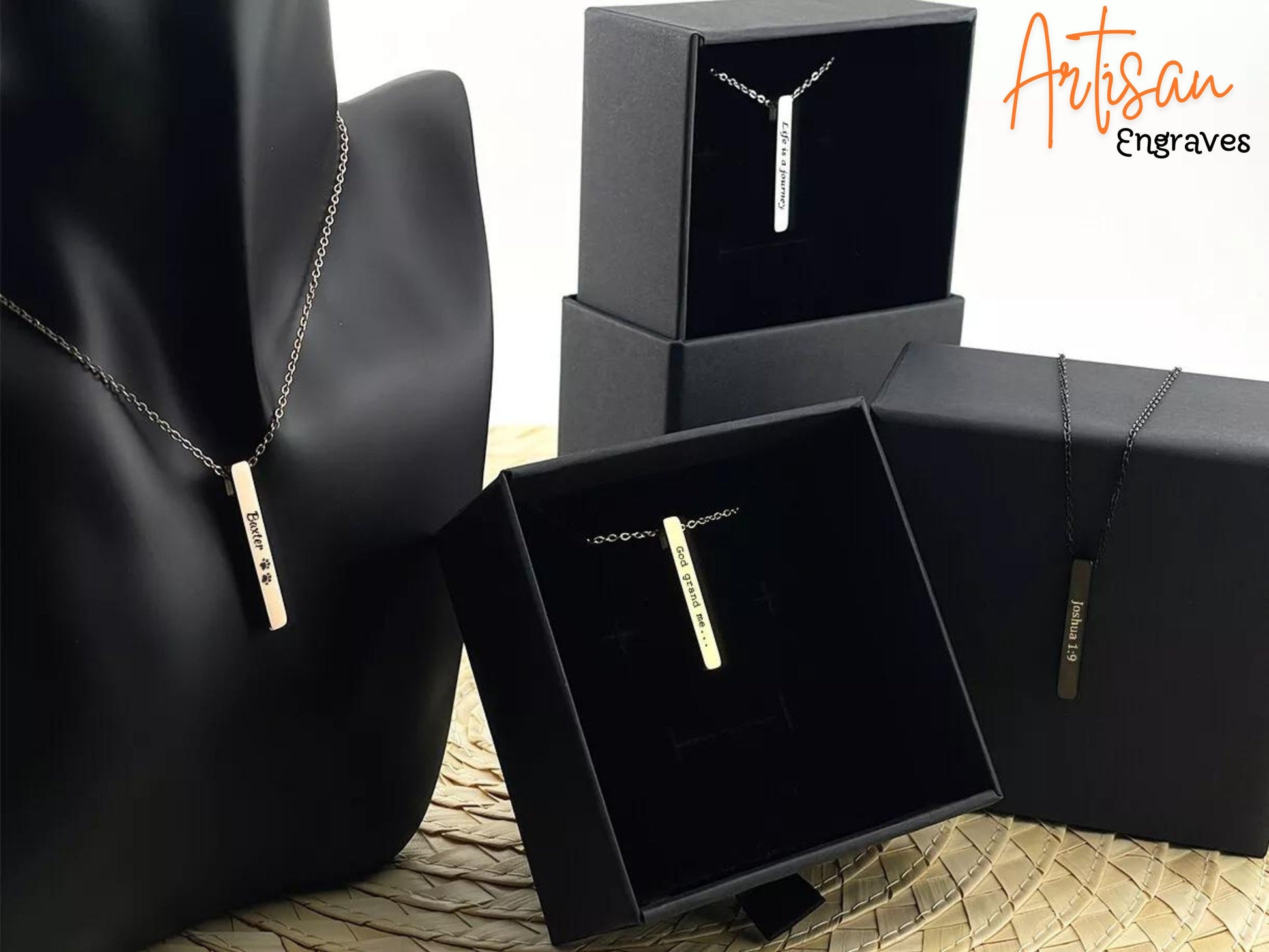 Customize Name Bar Necklace, Vertical Necklace Stainless Steel, Personalized Vertical Bar Necklace, Name Necklace, Custom Jewelry, Gift Mom, Christmas Gift