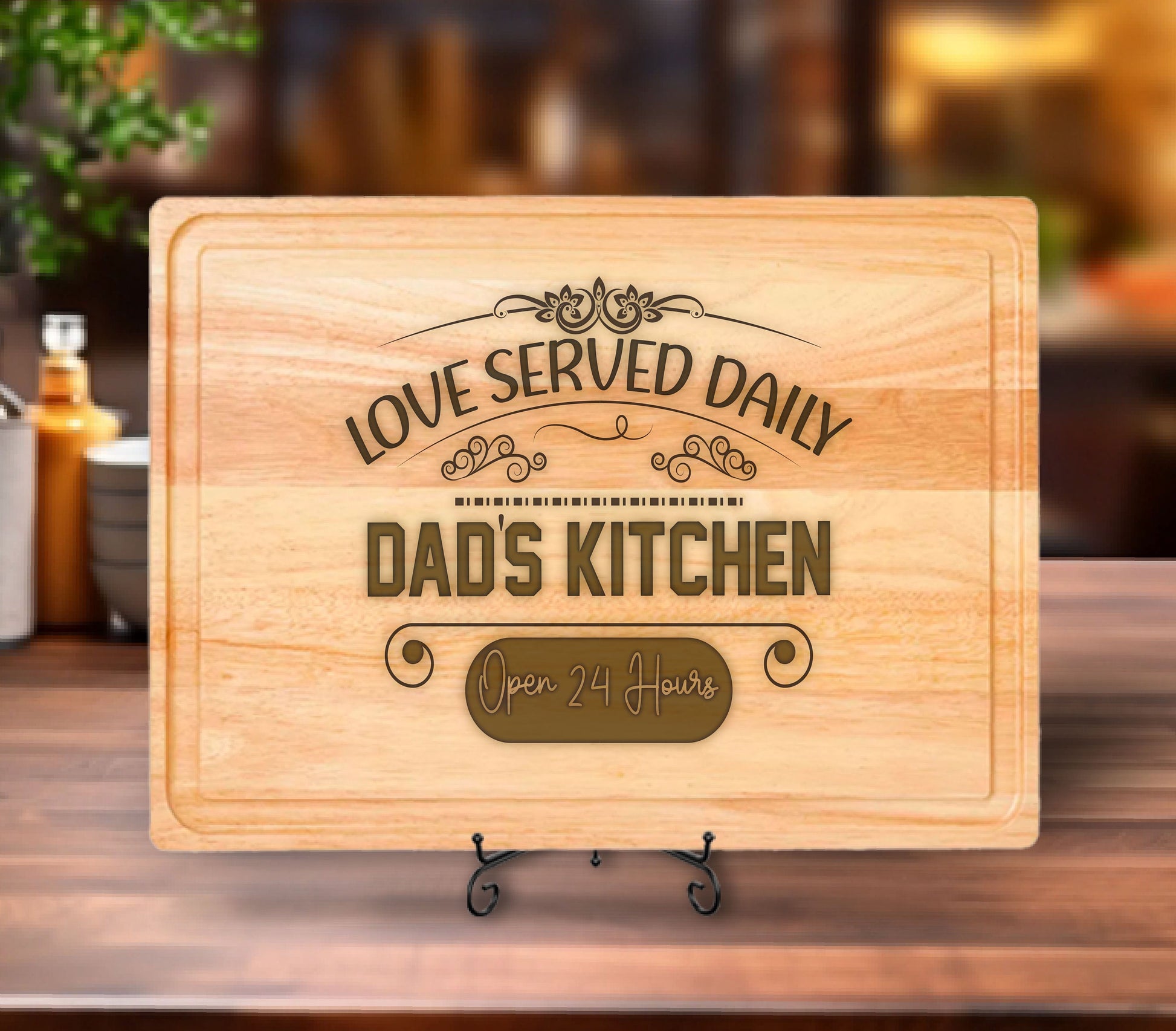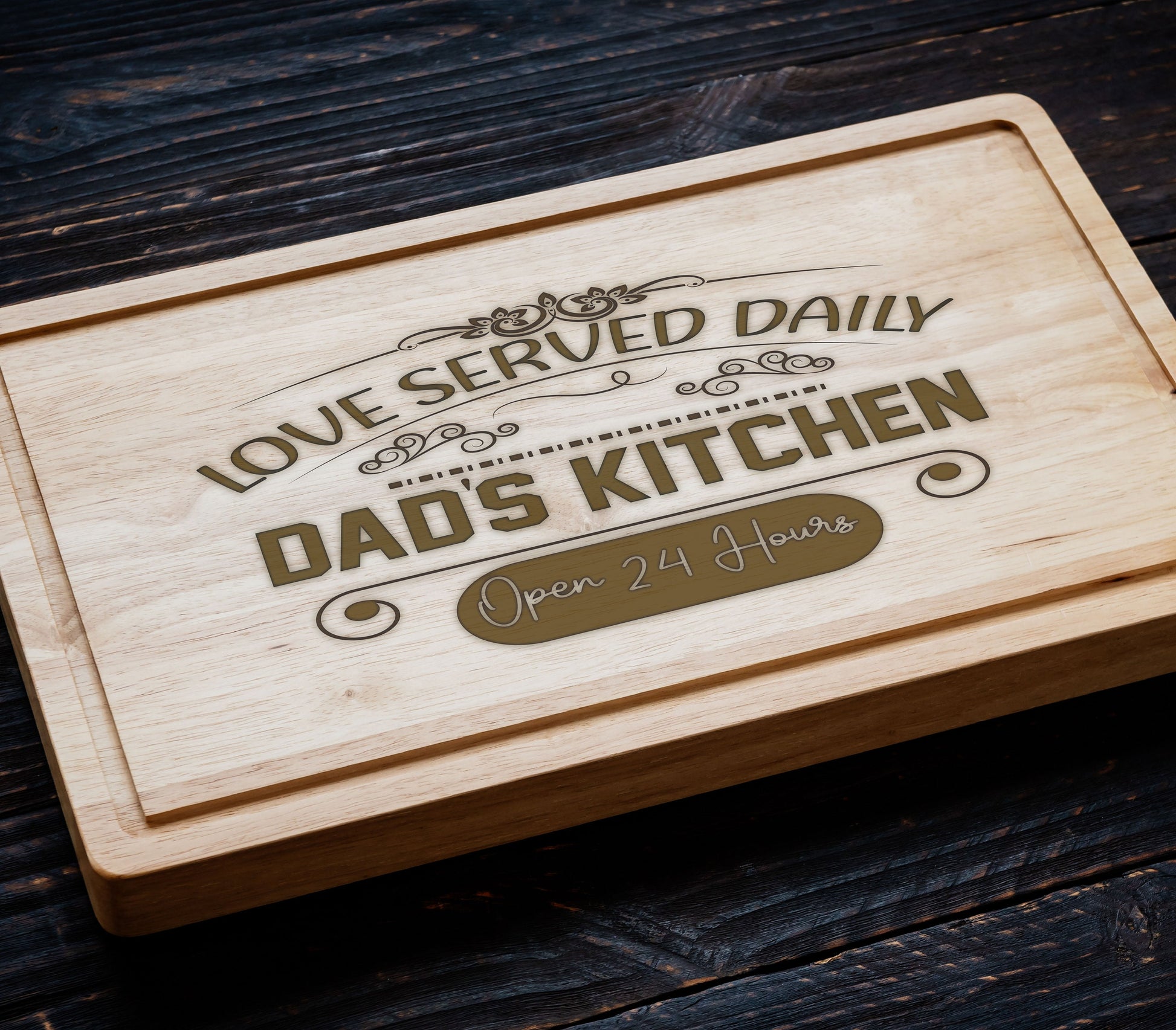Dad's Kitchen Open 24 Hours Cutting Board, Grill Father Gifts, Griller Gifts, BBQ Gift for Men's Birthday, Fathers Day Cutting Board, Birthday Gift for Dad From Daughter Wife, Chef Gift, Cooking Gifts, Steak Board