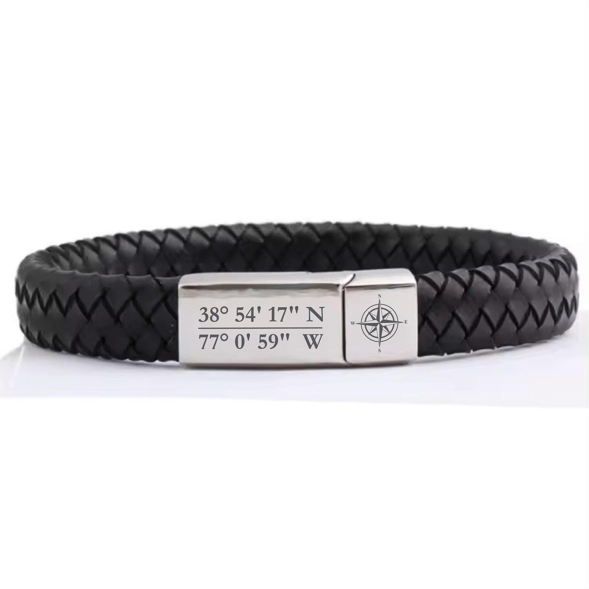 Father's Day Custom Men's Engraved Hidden Message Bracelet, Father Gift Leather Bracelet, Boyfriend Birthday Gifts, Custom Men Jewelry