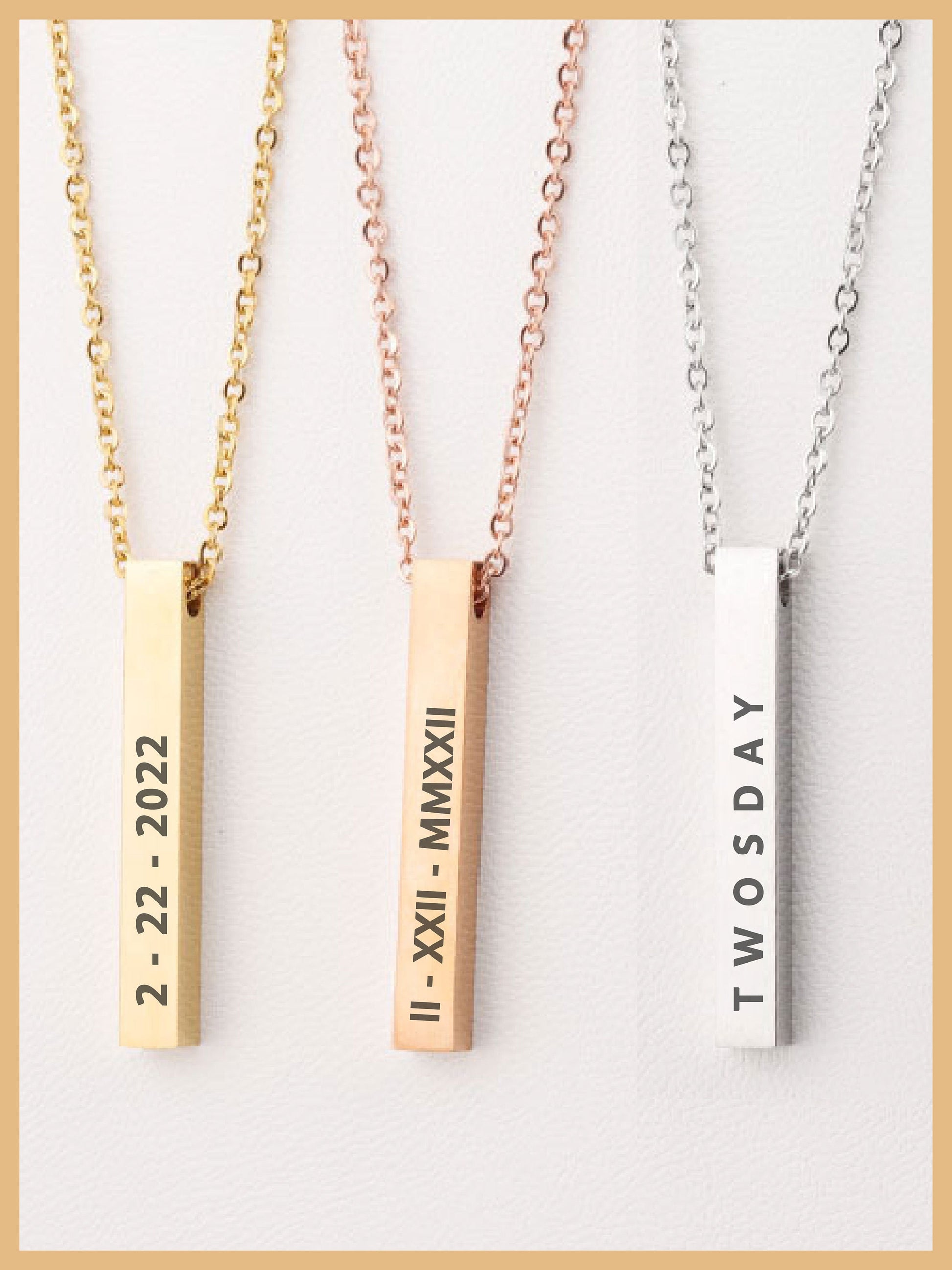 Twosday Bar Necklace, Twosday Necklace Gift, Customize Name Bar Necklace, Custom Bridesmaid Gift, Vertical Necklace Stainless Steel